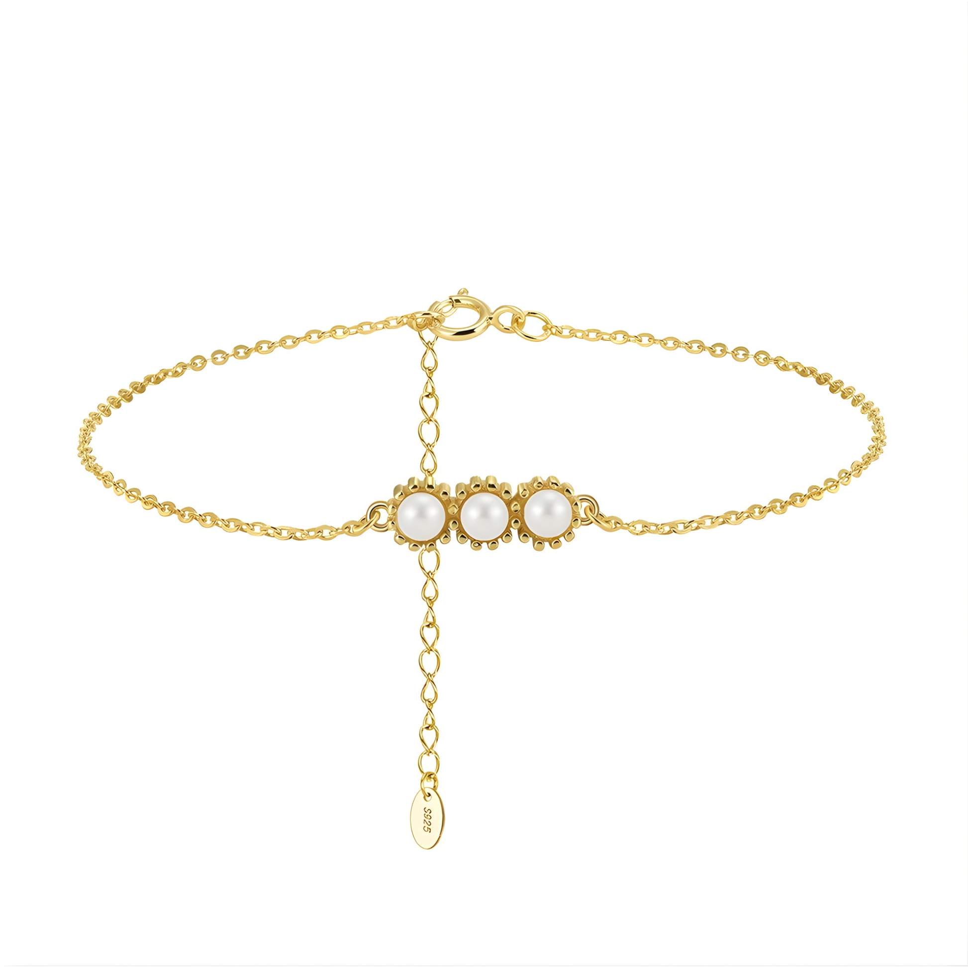 Trois perles d’eau douce naturelles – symbole d’élégance et de pureté.