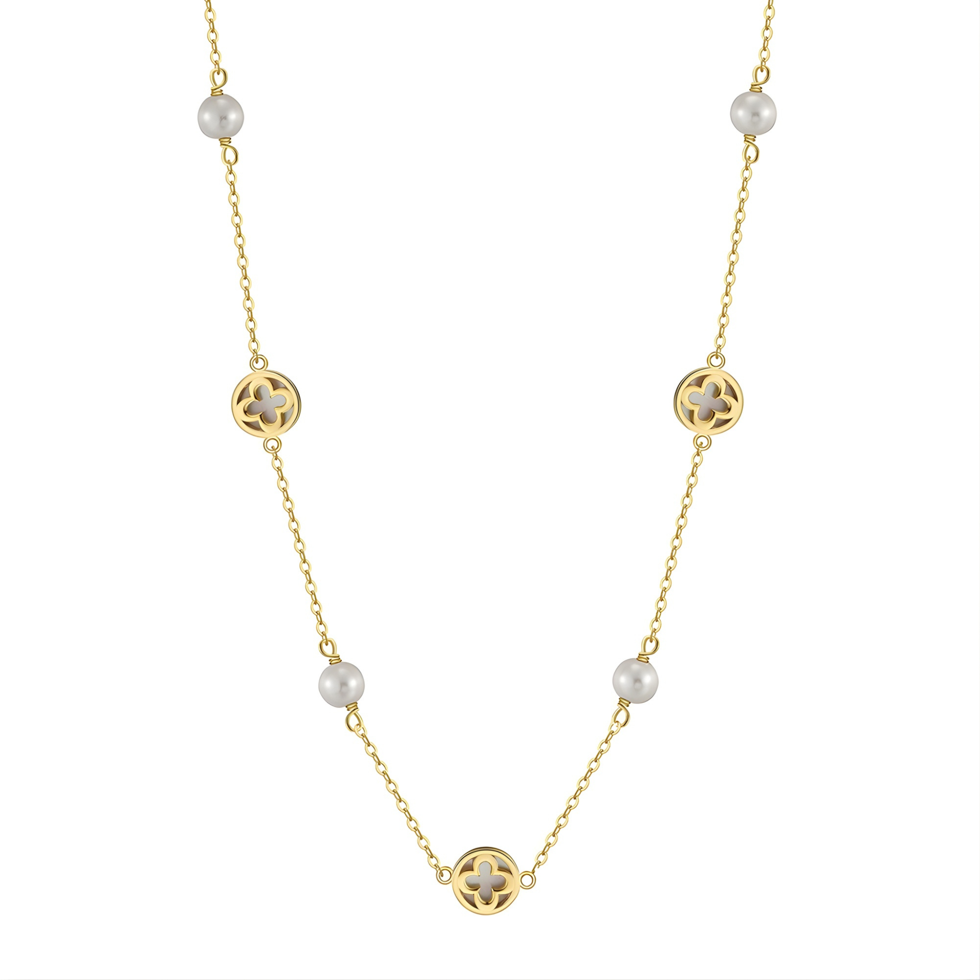 • Nacre éclatante – Chaque perle diffuse une lueur douce qui illumine avec délicatesse la ligne du cou.